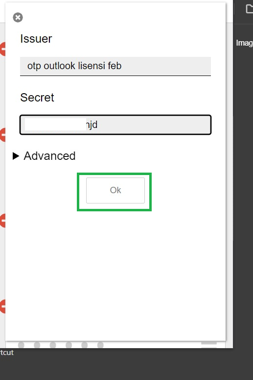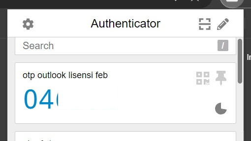 Bapak/Ibu juga akan diberikan auth code, dimana auth kode tersebut perlu anda inputkan ke aplikasi Authenticator untuk mendapatkan kode verifikasi login outlook. Berikut langkah langkah menginputkan kode auth ke aplikasi Authenticator via Chrome Extention: