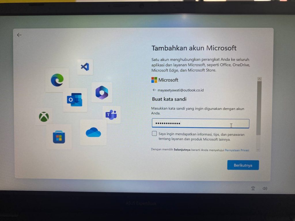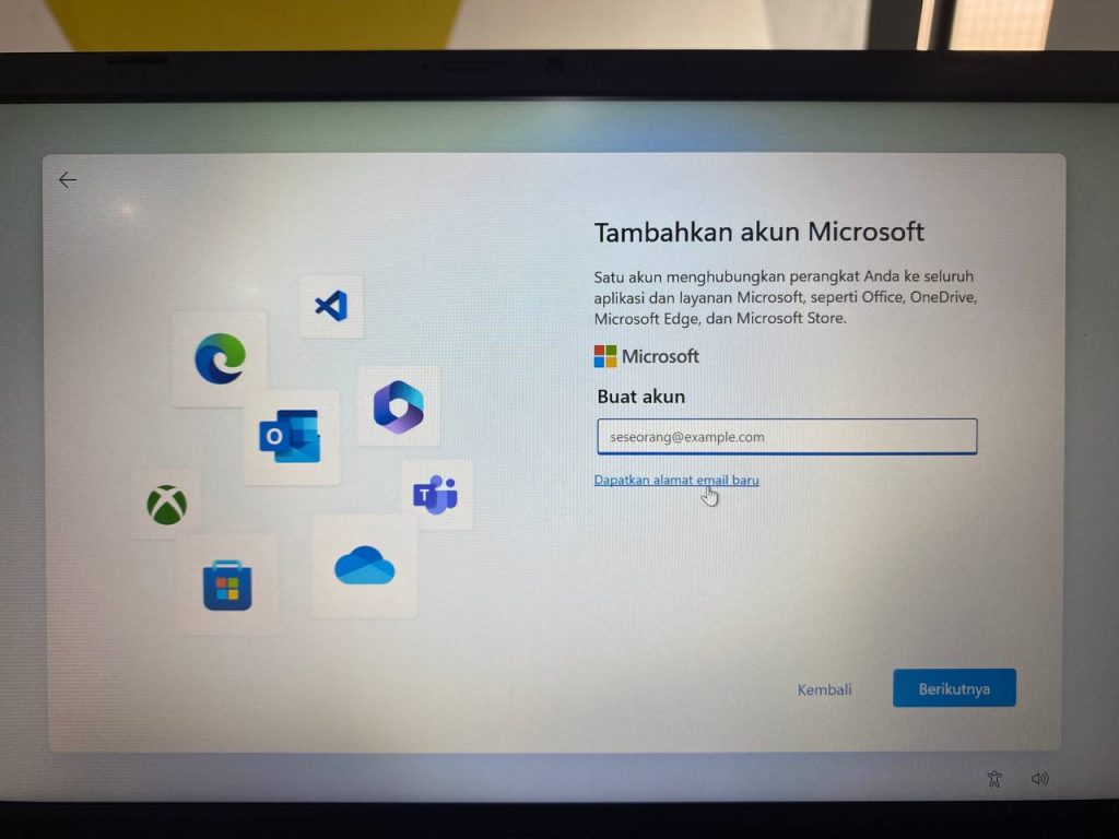 Bagi yang sudah memiliki akun microsoft universal, langsung saja login masukan “email dan password“. Dan bagi yang belum mempunya akun microsoft universal, bisa langsung klik “Create One atau Dapatkan Alamat Email Baru”