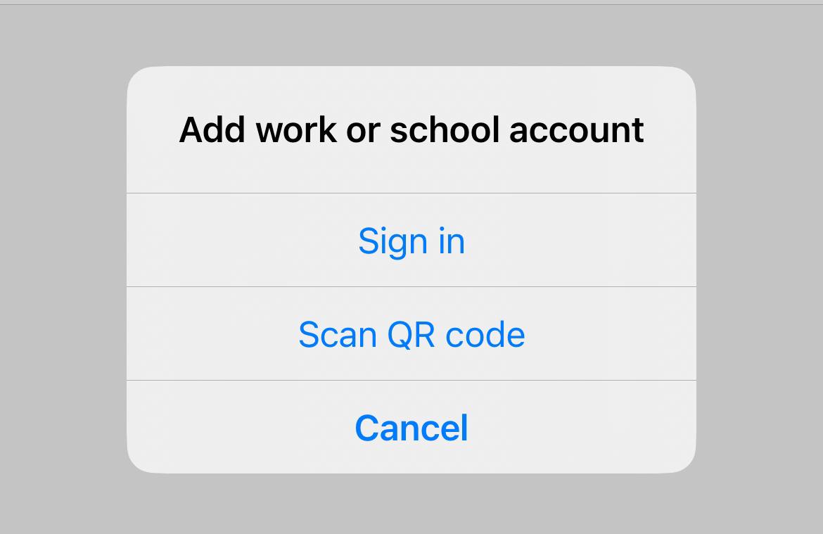 6. Pilih icon “+” dipojok kanan atas >> Pilih “work & school” >> Pilih “Scan QR Code”