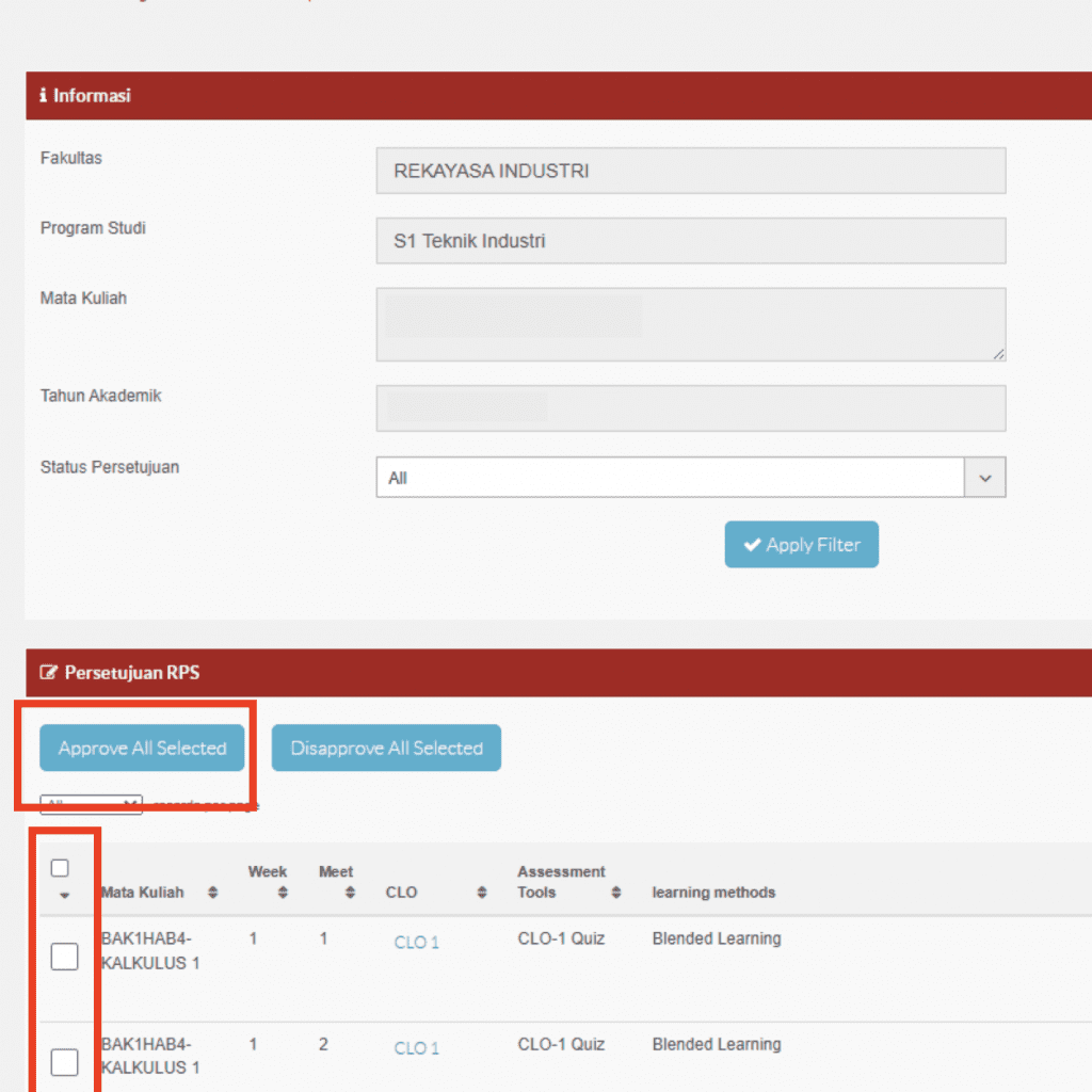Bagaimana cara mengapprove ajuan RPS di Kaprodi