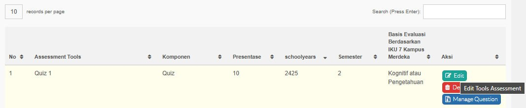 2. Klik Kelola Tool Assesment » Klik Aksi Edit