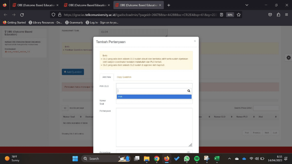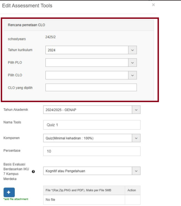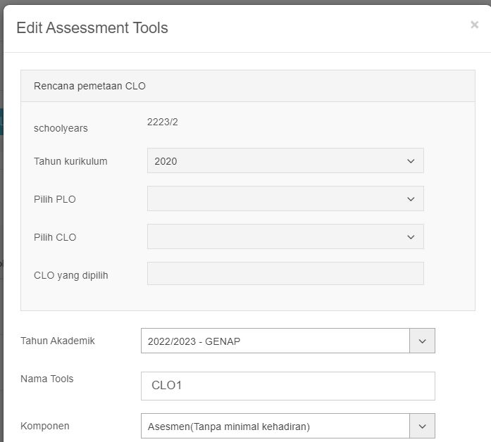 Tidak bisa memilih PLO CLO pada saat Edit Assessment Tools